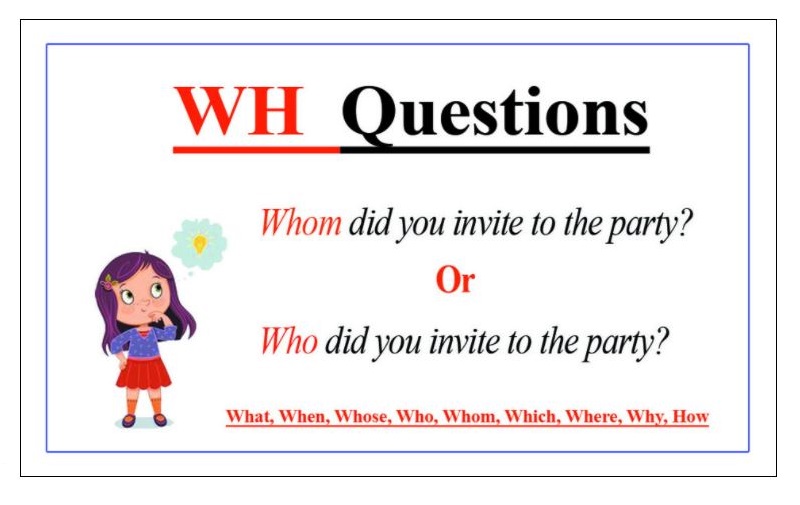 Cách đặt câu hỏi với Who trong tiếng Anh - Seri câu hỏi Wh questions: Who có nghĩa (là) ai, được sử dụng khi muốn hỏi về người. Who + Be + S....? 100 câu ví dụ Cách đặt câu hỏi với Who trong tiếng Anh giao tiếp